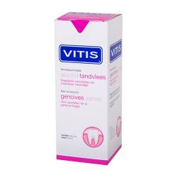 VITIS Gezond Tandvlees Mondspoelmiddel geeft een dagelijkse ondersteuning van de mondhygiëne bij kwetsbaar tandvlees. VITIS Gezond Tandvlees Mondspoeling heeft een anti-plaque werking en werkt astringent op het tandvlees. VITIS Gezond Tandvlees wordt ook aanbevolen wanneer het tandvlees extra gevoelig is, bijvoorbeeld na een behandeling van (ernstige) tandvleesbehandelingen en bij een lage weerstand, zwangerschap, langdurige stress of ziekte. De Mondspoeling bevat geen chloorhexidine of alcohol en heeft een prettige smaak.