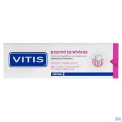 VITIS Gezond Tandvlees Tandpasta geeft een optimale dagelijkse ondersteuning van de mondhygiëne bij kwetsbaar tandvlees. De tandpasta en mondspoelmiddel gaat effectief tandplaquevorming tegen en verzorgt en versterkt het tandvlees. VITIS Gezond Tandvlees wordt ook aanbevolen wanneer het tandvlees extra gevoelig is, bijvoorbeeld na een behandeling van (ernstige) tandvleesbehandelingen en bij een lage weerstand, zwangerschap, langdurige stress of ziekte.
