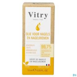 Vitry Be Green nagel- en nagelriemolie bestaat voor 99,7% uit ingrediënten van natuurlijke oorsprong: het is een mix van 3 kostbare oliën (zoete amandelolie, kokosolie en jojobaolie) om de nagels te voeden en de nagelriemen te verzachten.