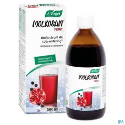 Molkosan® Fruit van A.Vogel is een weidrank met fruit en calcium. Het is een bron van calcium die bijdraagt aan een evenwichtige vertering. De combinatie van wei, appel, aronia-bessen en stevia geeft Molkosan® Fruit een milde en aangename, verfrissende en licht zure smaak.