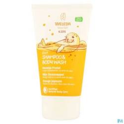 De Kids 2in1 Shampoo & Body Wash reinigt de huid en het haar van je kindje op milde wijze door het gebruik van plantaardige wasactieve stoffen. Het hoofdingrediënt is biologische sesamolie. Deze olie beschermt de huid en voorkomt uitdroging. De shampoo & body wash is zacht voor de ogen, vrij van SLS/SLES en zeep en pH-neutraal. De vrolijke, fruitige geur is samengesteld uit natuurlijke zoete sinaasappelolie en vanille-extract.