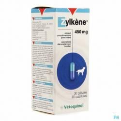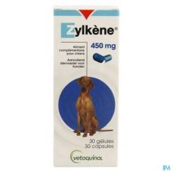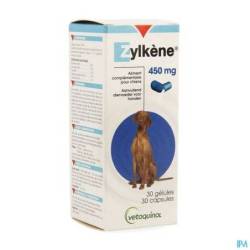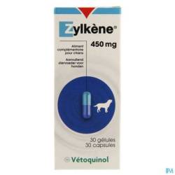 Zylkène 450 mg: Samenstelling: Zylkène poeder: 82,9%: caseïne (trypsine gehydroliseerd rundercaseïne),magnesiumstearaat. Capsule: 17,1%: runderhuidgelatine. Analytische bestanddelen: ruw eiwit 78%, ruwe as 12%, vocht 8%, ruw vet 3%, ruwe celstof 0%